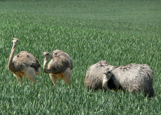 Nirgendwo sonst in Europa leben die bis zu 25 kg schweren, flugunfähigen Laufvögel in freier Wildbahn. Wenn die Hähne während der Paarungszeit rufen, kann man den Namen der Tiere ableiten, es hört sich an wie „nan-du“. Bei den Nandus brüten übrigens ausschließlich die Hähne, sie ziehen die Kinder auch auf und sind für den Bau des Geheges zuständig, in Mecklenburg an den Rändern der Felder.